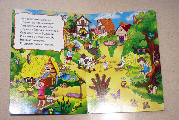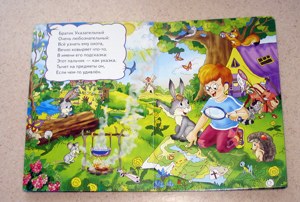 Есть у нас ещё замечательная книжка про братьев пальчиков. По которой мы учим название пальчиков. Купила её случайно на Украине, чтоб было что почитать с сыном в поезде