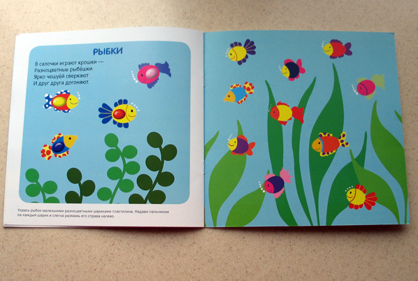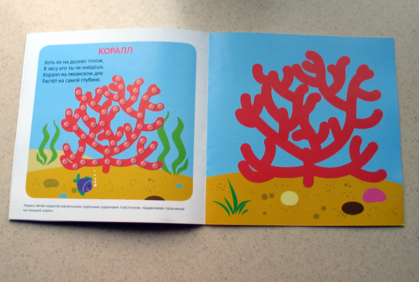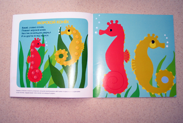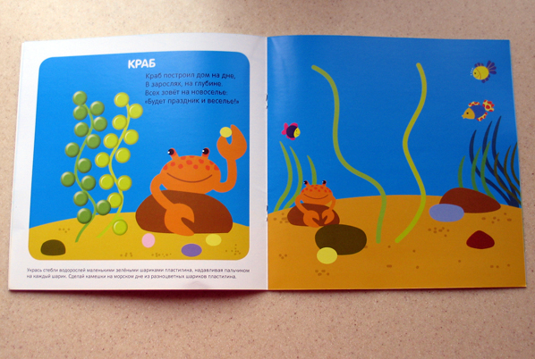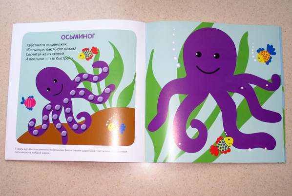 И покажу сразу вторую нашу занимательную новиночку, которая посвящается летнему отдыху на море. Да, да, да, за окном слякоть и мрак, а мы вспоминаем наш летний отдых, а заодно и знакомимся с морскими обитателями. Издательство "Мозаика синтез" "Лепка для малышей. Осьминог". Книга хорошая, хотя у нас и есть похожие, небольшого формата, красочная и стоит недорого. Очень понравились стихи.
