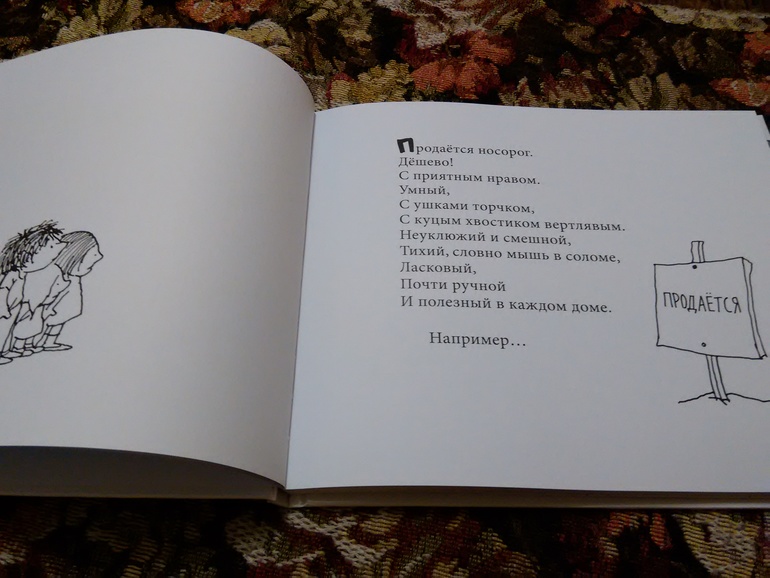 Давайте немного помечтаем, вспомним детство. Все мы мечтали завести себе четвероногого друга, кто из нас не тащил с улицы бездомных котят, щенят, не подбирал птенцов... А думали ли вы когда-нибудь завести носорога? И что с ним, таким громадным и неуклюжим, делать? Шел Силверстайн предлагает пофантазировать вместе с ребенком.