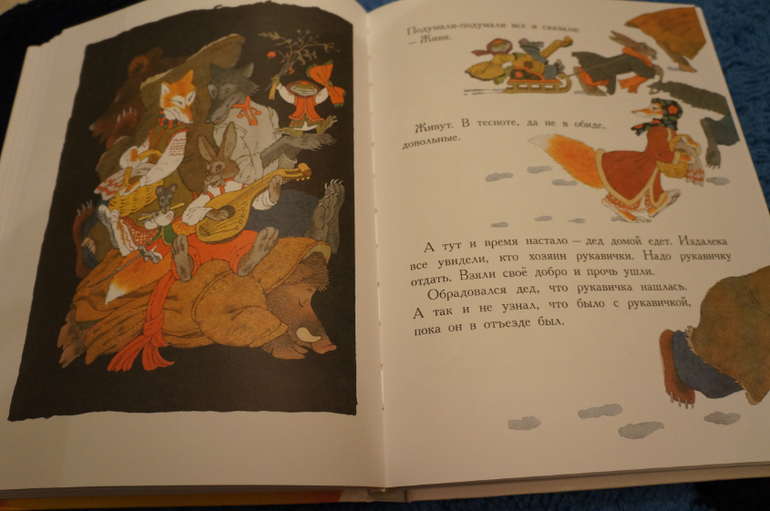 Обложка лакированная. Достойная книга с плотными белыми офсетными страницами. В ней сказки на любой вкус и возраст. Начиная с простейших сказок для малышей (Репка, Курочка Ряба, Теремок, Колобок) и до малоизвестных сказок (Чувилюшка, Чивы-чивы-чивычок).