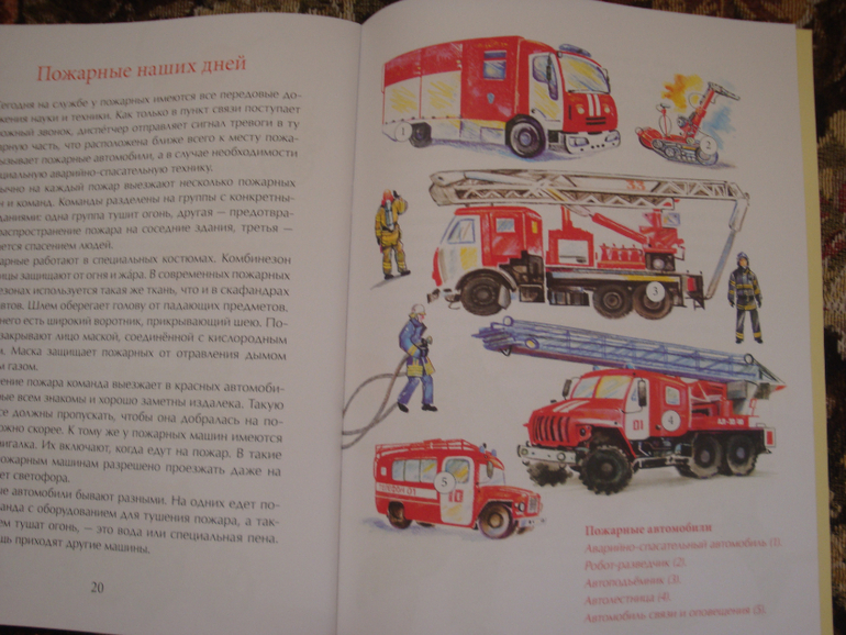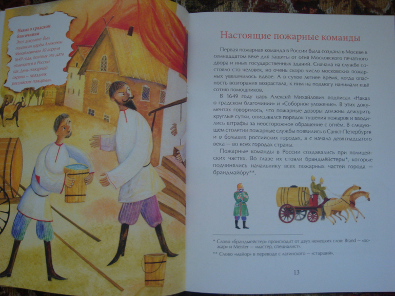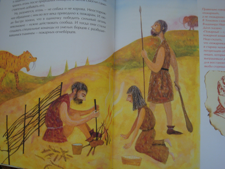 В книжке доступно для ребенка рассказывается как возникают пожары и что люди с древних времен делали, чтобы с ними бороться. Много исторических вставок для деток постарше, иллюстрации шикарные, тематические, в красно-оранжевых тонах. Своих денег книга безусловно стоит.
