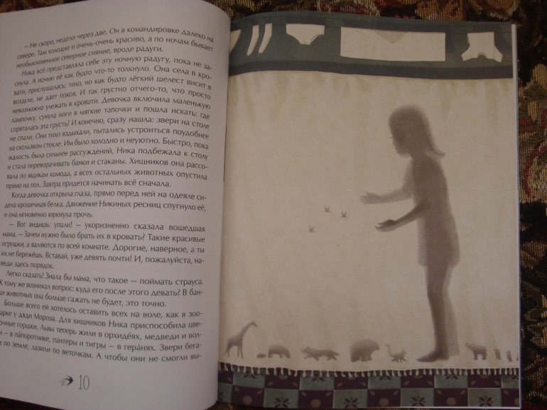 Однажды девочке Нике доставили посылку, в которой она обнаружила… целый зоопарк. Животные были маленькие, словно игрушечные, но совершенно живые. И Нике надо было всех их разместить, накормить, позаботиться о крошечных, но весьма резвых питомцах. Нужно было очень постараться, чтобы создать в комнате обезьяньи джунгли, лесные заросли, горные склоны и даже море для кита.