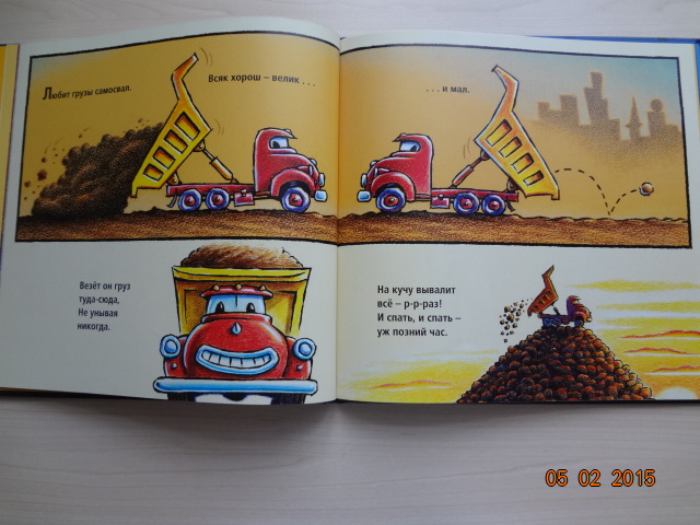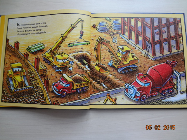 Книга появилась у нас давно, годика в полтора. Тогда мы с упоением рассматривали рабочие машины и учили их названия. Уже который раз убеждаюсь, что книги нужно читать по возрасту. Если книга была куплена раньше, чем нужно, то ребенок ее просто не поймет. А если мама забыла (как часто бывает в моем случае), а потом достала книгу, то ребенок ее перерос и ему будет просто неинтересно. Вот так и произошло у нас. Сначала мы смотрели просто картинки и сын отказывался слушать текст, я книгу убрала в очень долгий ящик. Сейчас вспомнила про нее, а всё, "поезд ушел". Сыну она уже неинтересна( Всему свое время!