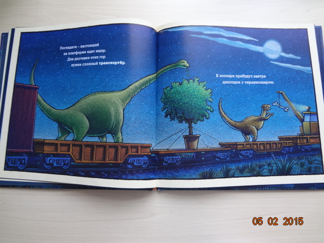 Мне самой книга понравилась, хороший текст, много новых слов (котёл, тормоз, бригада, рефрижератор и др.) Сын живо ими интересовался и запоминал. В иллюстрациях много деталей, которые можно обсудить.Например, мы повторяли животных. Именно по этой книжке узнали, что динозавры-это общее название, а бывают еще диплодок и тираннозавр. Повторяли цвета, считали вагоны. Есть любимый разворот с гоночными автомобилями! Их мы тоже пересчитывали и называли их цвета. Вообщем, книгу горячо рекомендую, по ней можно много интересненького придумать. Проверено на себе!