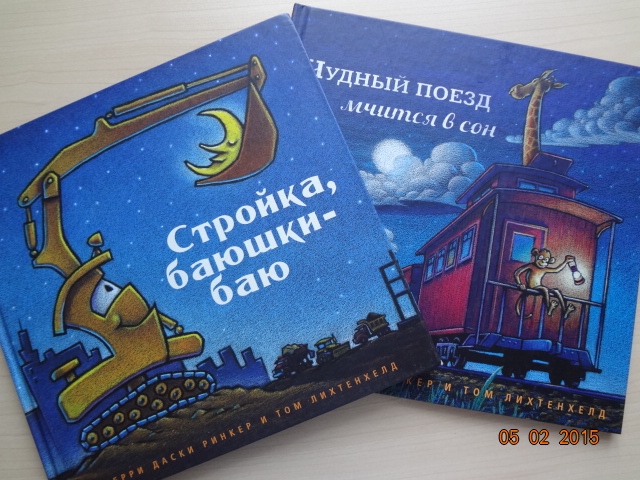 Малышам от 0 до 3Очень давно хотела написать наши впечатления о двух книгах Шерри Даски Ринкера с илл. Тома Лихтенхелда "Стройка, баюшки-баю" и "Чудный поезд мчится в сон".