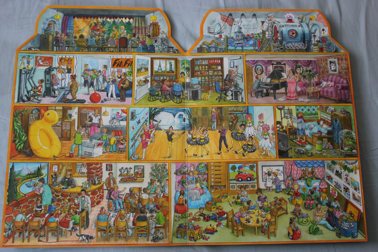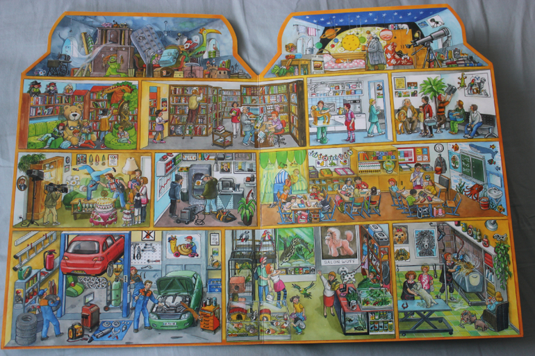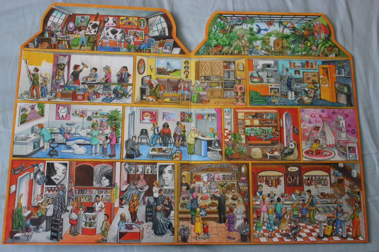 Тут и школа балета, и детский сад, и оперная певица, и кафе, даже есть библиотека и ветеринарная клиника.. Представляете, сколько новых профессий можно узнать только из одной этой книги?