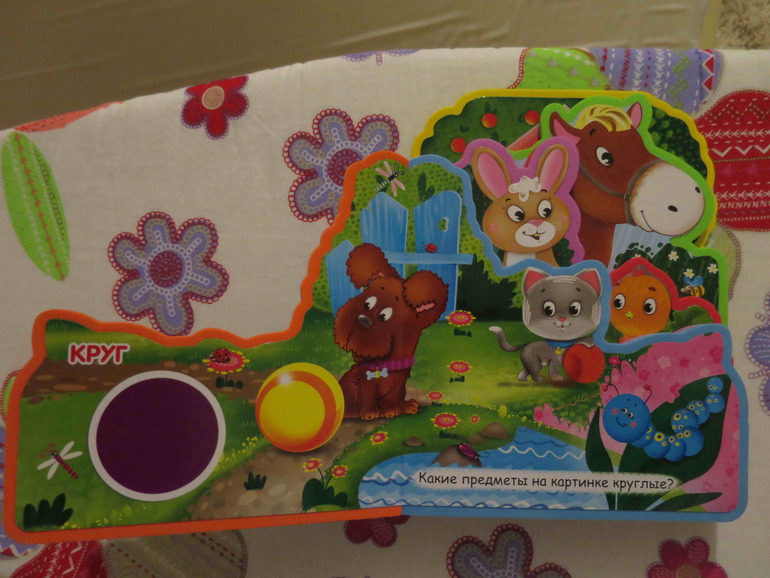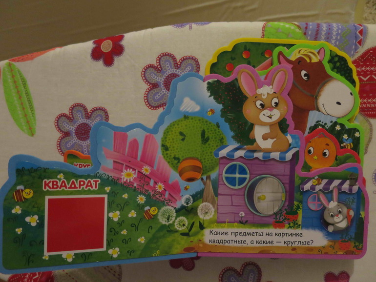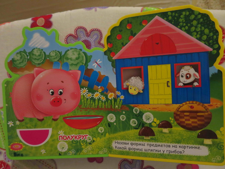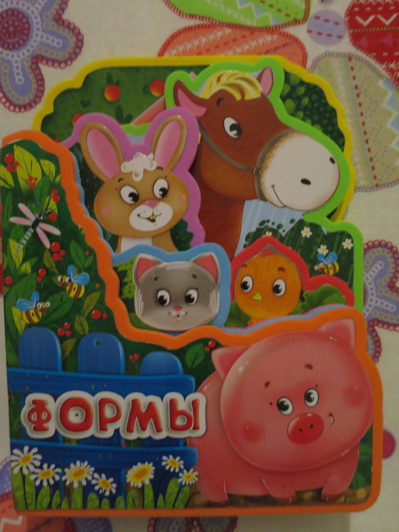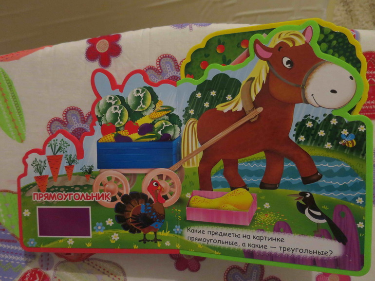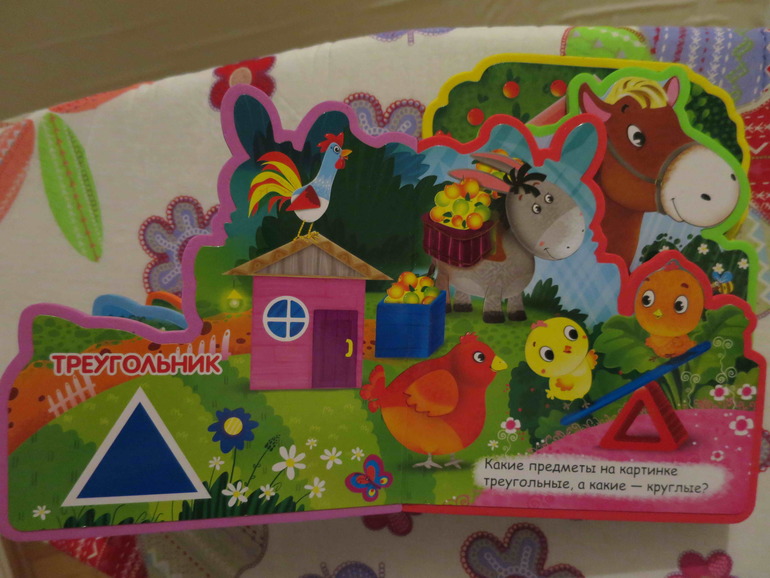 Книга с геометрическими фигурами, на обороте написано, как только заметила: до 6 лет! Куча времени)