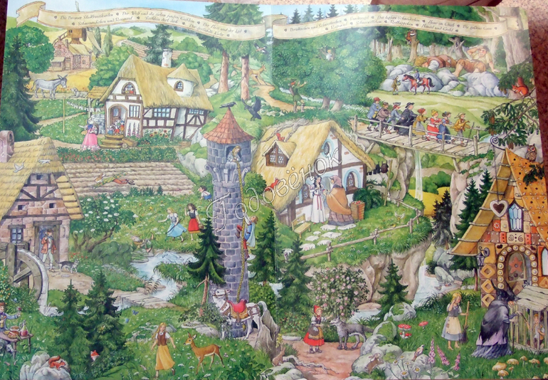 Мне кажется, замечательная идея: некоторые сказки захочется либо перечитать, либо вызвать у ребенка интерес первый раз прочесть ту или иную сказку.Ведь, если не читали сказку, то интересно: что за шествие на мосту (на картинке справа вверху)