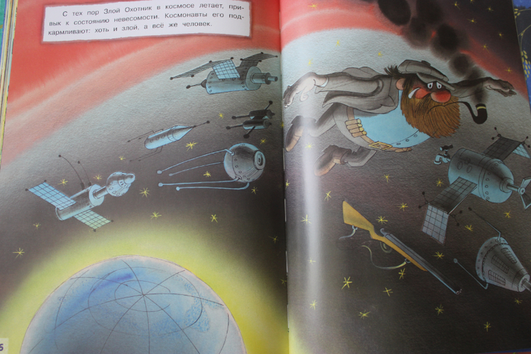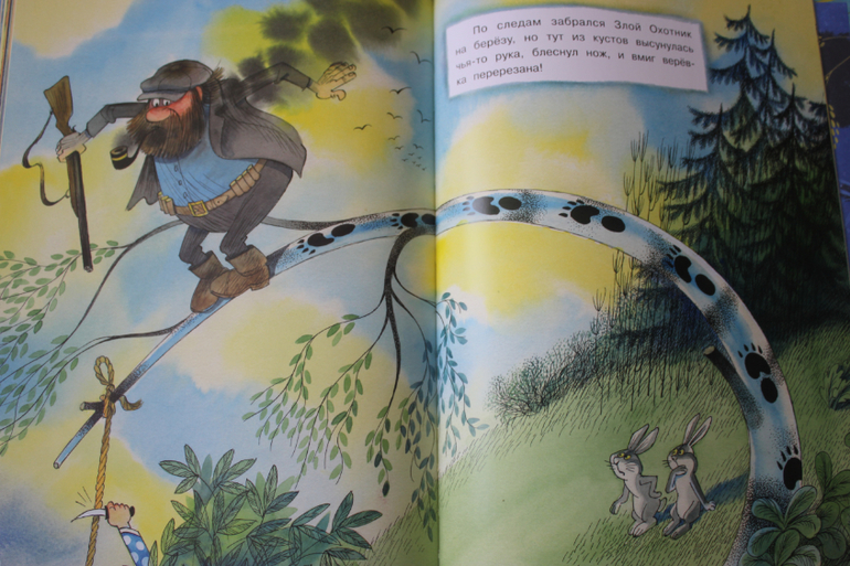 Цензура бы, наверное, должна была бы запретить эту книгу, как и мультфильм "Ну, погоди!", ведь охотник в этой книге курит трубку. Меня это не смущает, а вас? В нашей семье никто не курит, и это лишний повод поговорить с ребенком о вреде табачного изделия.