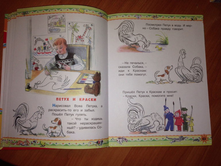 Сегодня книг Сутеева великое множество и этот вариант очень удачный. Книга богатая по содержанию, бумага плотная, картинки добрые и красивые, как в мультиках. На мой взгляд недостатков нет.