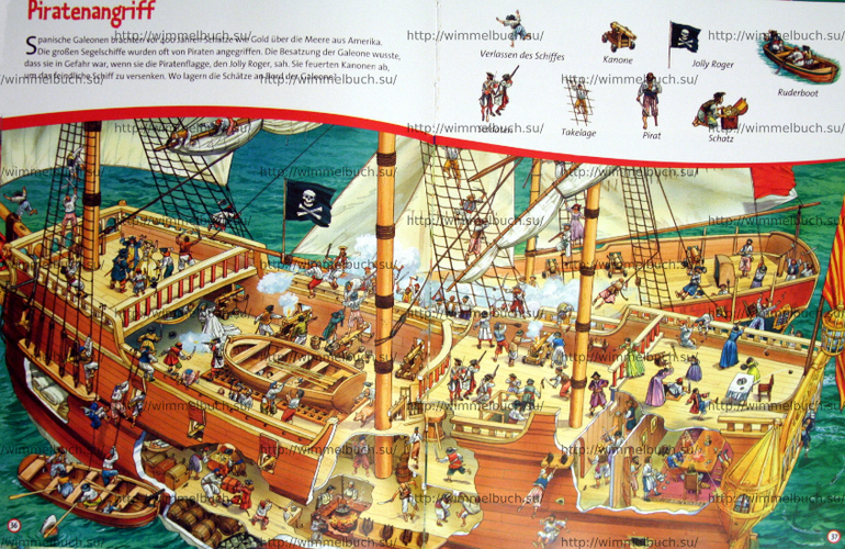 В общем, неплохой вышел виммельбух: много тем, сюжетов, хорошая детализация, предметы для поиска на полях страниц.