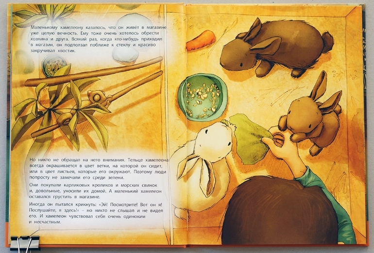 Дошкольникам и младшим школьникамВсе дети мечтают о домашних питомцах: кошечках, собачках, птичках, хомяках, черепахах, на худой конец, рыбках. А в зоомагазинах в Германии продают не только их. Кто хочет хамелеончика? Что-то нет желающих. Никто его даже не замечает. Тогда малыш сам найдет себе хозяина и друга...