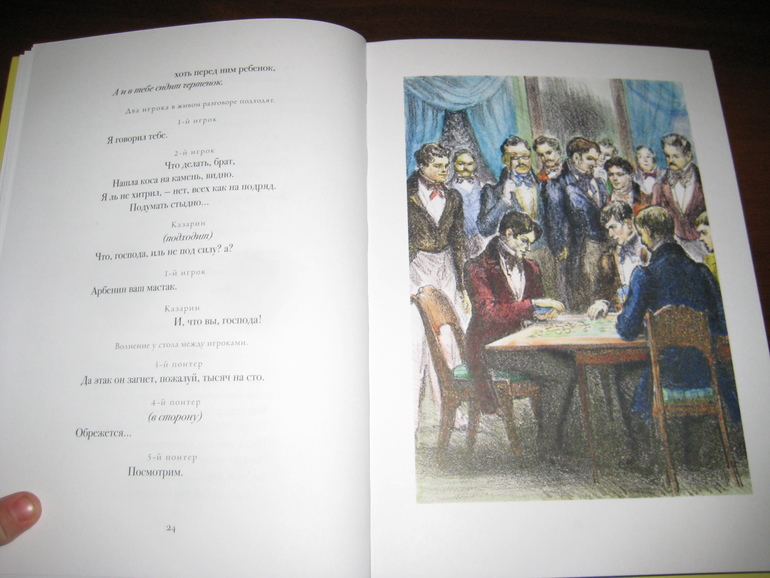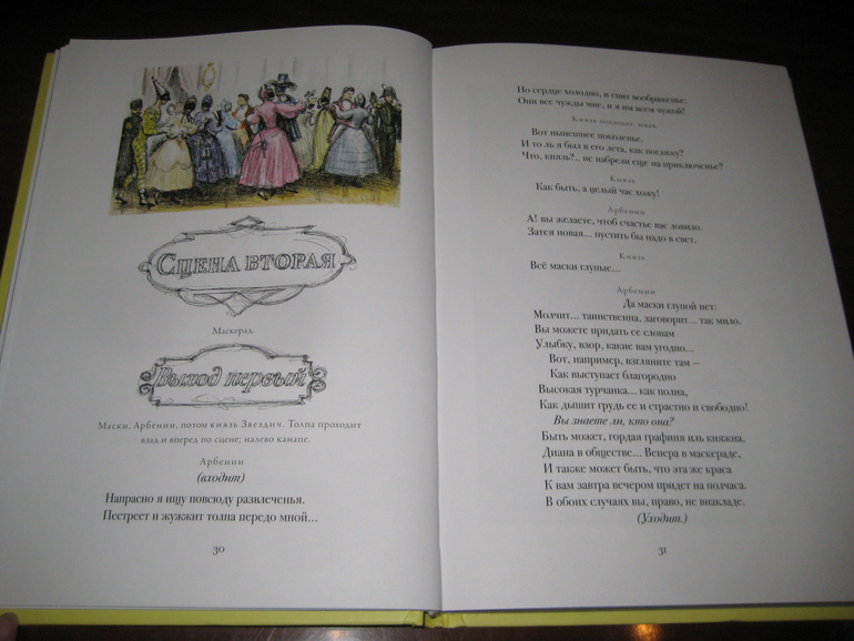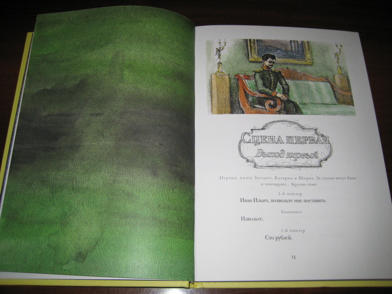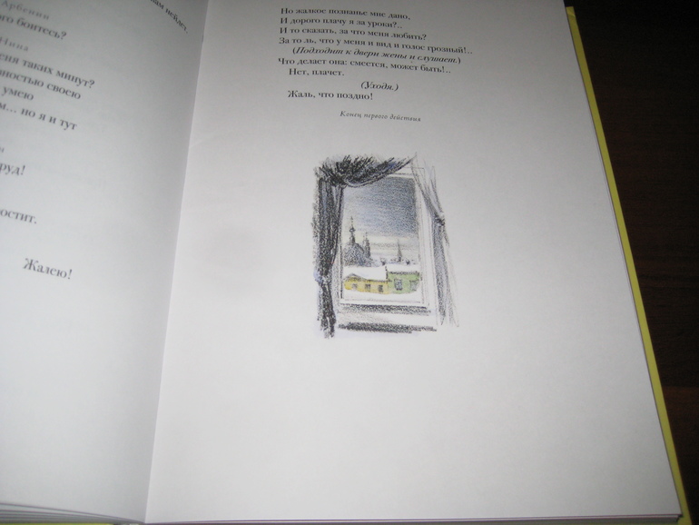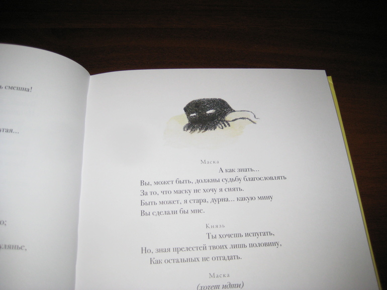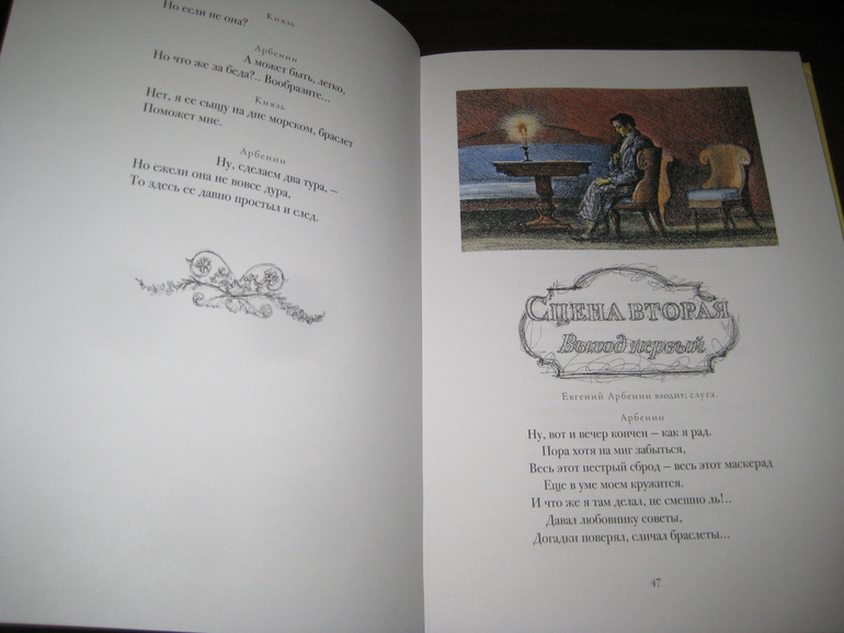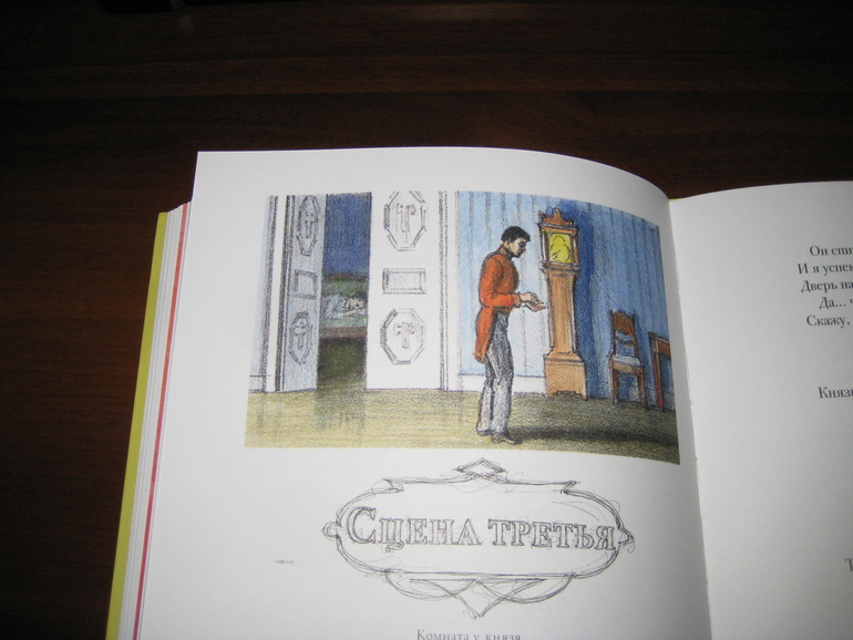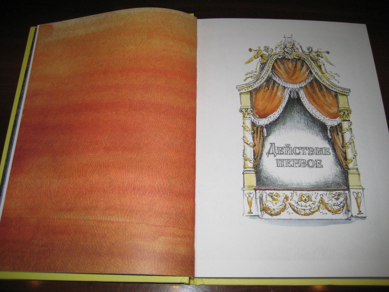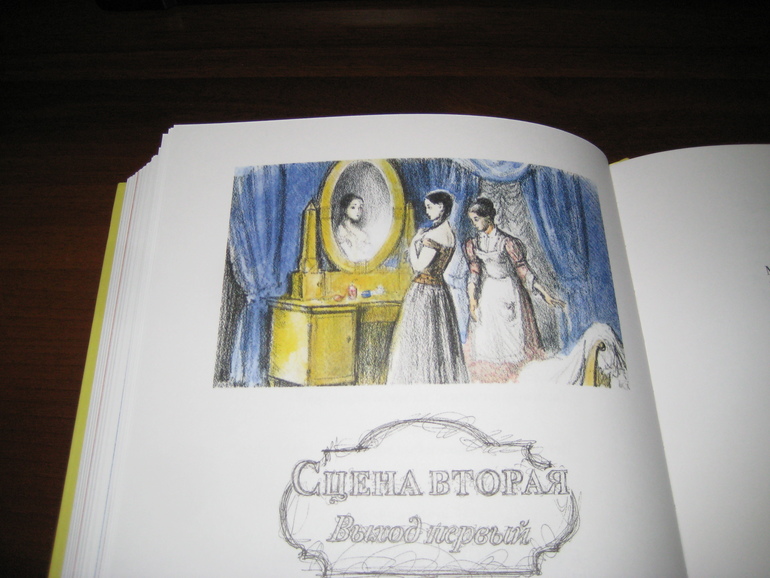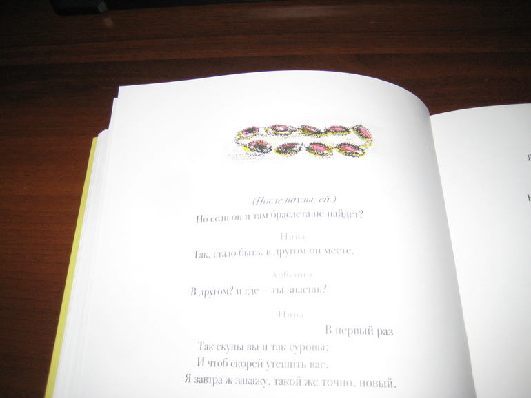 Если сам текст пьесы напечатан в книге хорошо, четко, то вот обозначение действующего лица видно похуже: текст мельче и бледнее.