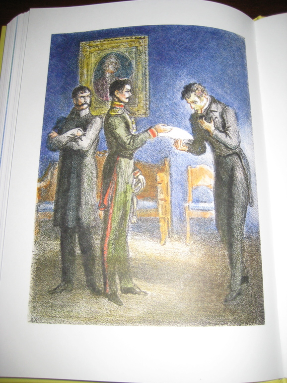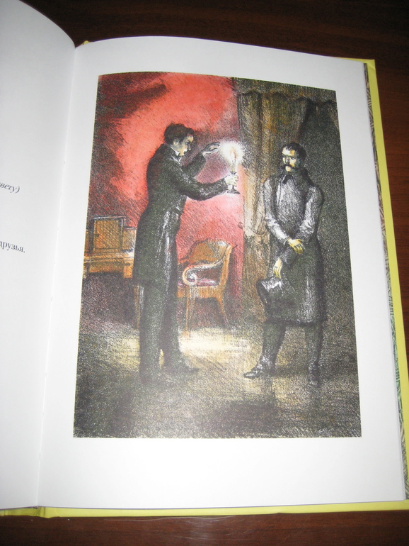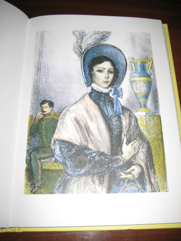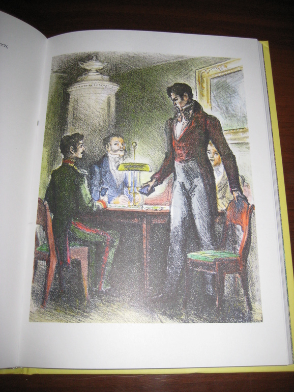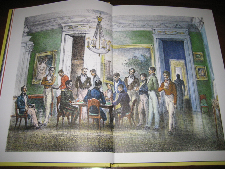 В книге, конечно, не каждый разворот проиллюстрирован, и даже не каждый второй, но есть несколько иллюстраций на целый разворот, как, например, вот эта, со множеством персон и детальной проработкой интерьера: