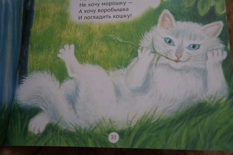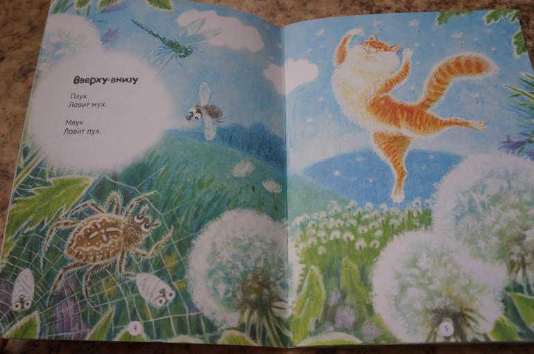Мяук такой воздушный и парящий. Эта картинка привлекла своей нежностью и легкостью. Мы долго ее рассматривали и даже сочинили свою историю.