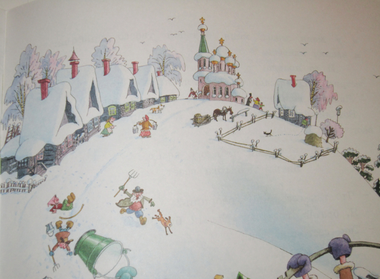 "Живые" рисунки, столько движения в них! Как телега быстро едет, как горшочки разлетаются - всё видно.