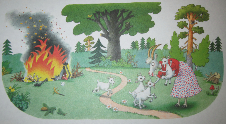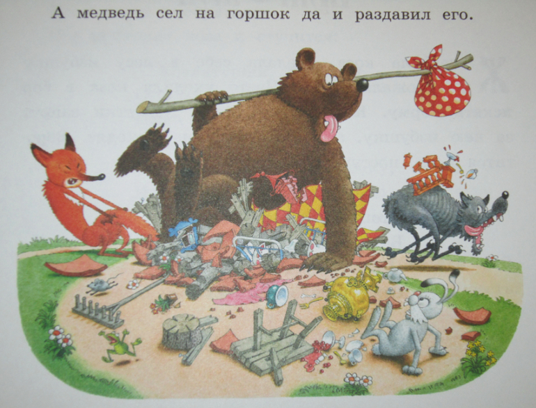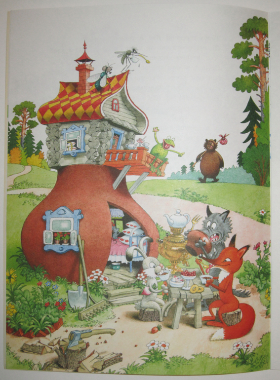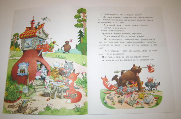 А тут тихо-мирно зверьки живут, пока не показывается Медведь, который такой теремок раздавил.![]()