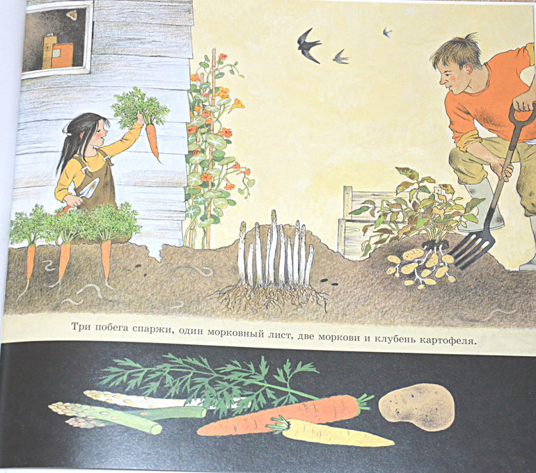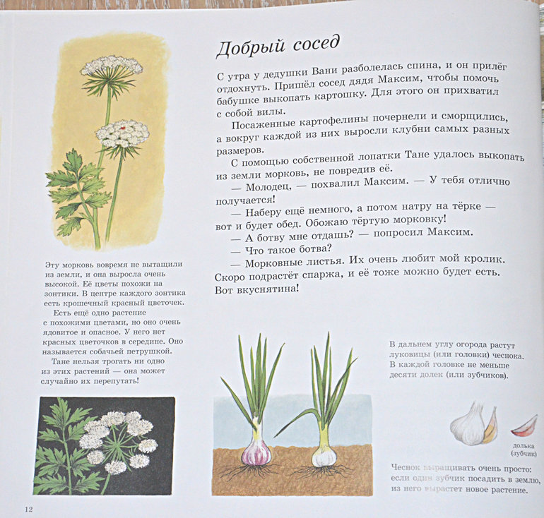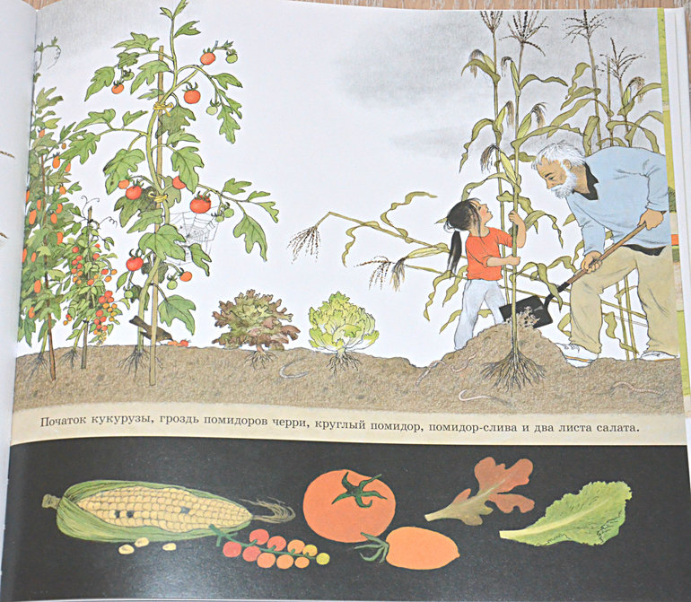 Как растут овощи (май шоп, лабиринт, рид. ру, озон) Наш новый весенний хит!! Девочка Таня приезжает в деревню к дедушке и бабушке на лето и помогает им в огороде. Лада стразу поняла, что это история про её дачу и её бабушку с дедушкой, которых она обожает и книга сразу стала настольно-напольно-кроватной и очень любимой! Тут много чисто огородных понятий (вилы, компост и проч.) По ходу разъяснения как растут, что любят и что не любят разные овощи, дополнительная информация о насекомых.