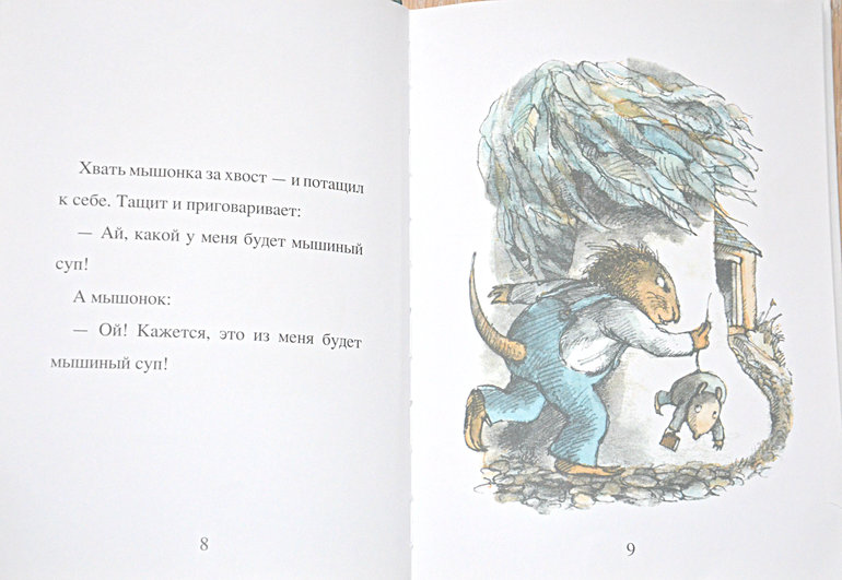 Мышиный суп (май шоп, Лабиринт, озон) Самая странная, неоднозначная ( и вообще не наша книга), но горячо любима дочерью! Я уже знаю все наизусть, насколько она востребована! Итак, история о мышонке, которого поймал хорек и собирается сварить из него суп! Да, начало несколько кровожадное, но смысл в том, что мышонок утверждает, что не может быть вкусного мышиного супа без четырех чудесных сказок и начинает их рассказывать. Сказки местами странные, местами философские, местами очень смешные! В конце мышонок говорит какие именно трофеи нужно принести из сказок и хорёк отправляется на их поиски, принеся их конечно мышонка он уже не находит))