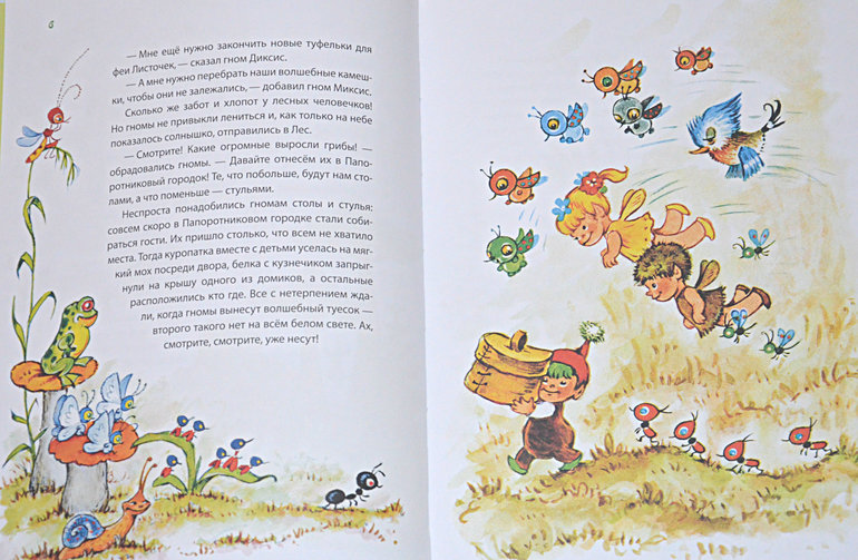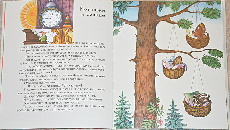 Мои надежды подтвердились и книга стала нежно любима дочкой! Коротенькие рассказы на половину странички о насекомых и прочих малютках такие сказочные и добрые, в каждом из них есть сказочное объяснение поведения или внешнего вида этих существ. Главный хит - волшебные иллюстрации Пивоварова с раскладывающейся картинкой! Лада столько раз за прочтение одного рассказа их открывает и закрывает, что жаль, что на них не поставили петли))