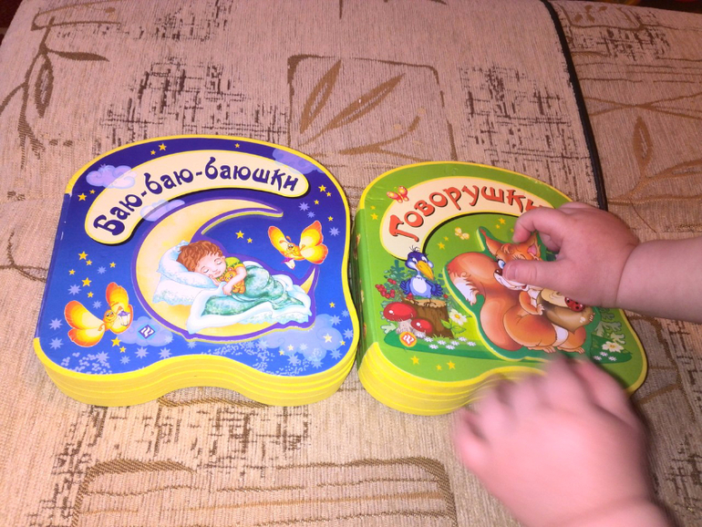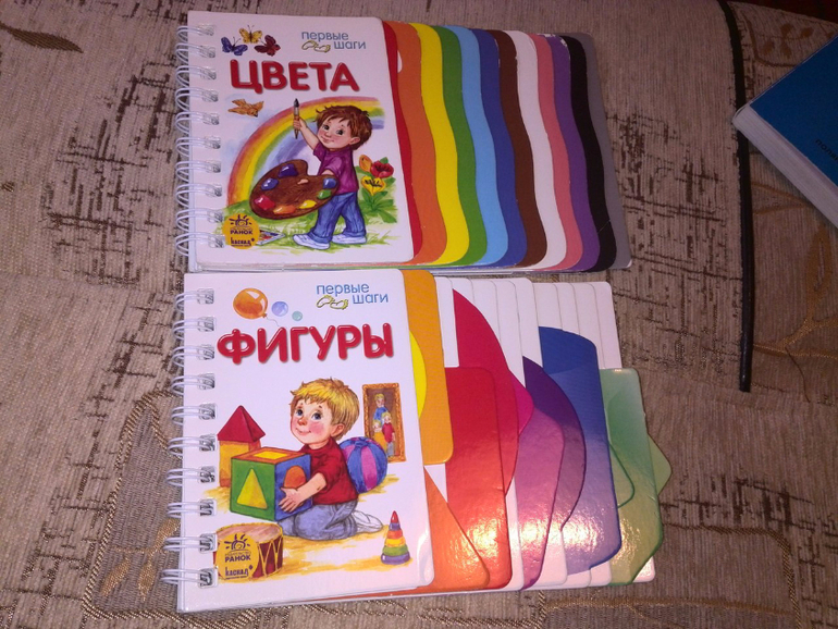 Самые первые наши книжки были про цвет и форму)Они яркие, их удобно листать, плотный картон глянцевый выдерживает покусательства)Как видите фиолетовый понравился на вкус больше всего)