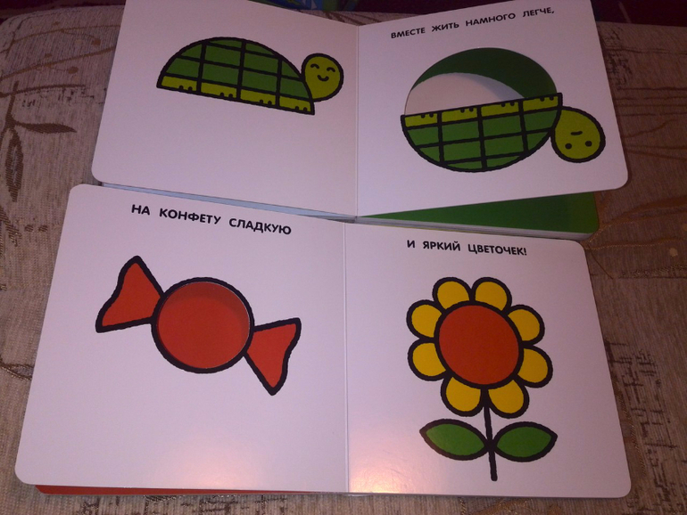 Дальше у нас довольно странные на мой взгляд книжки) НО!! Ребенок от них почему то в восторге)Бывали дни когда он тыкал в меня этими книгами по 6 раз) Он их смотрит очень внимательно) Книжку про половинки стал листать туда сюда смотрит как из половинок выходит целое)