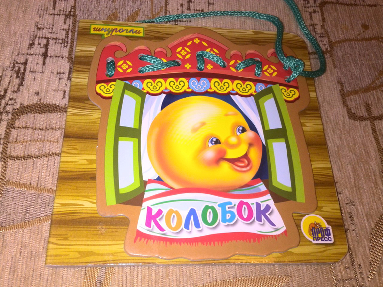 Одна из наших обожаемых книг Колобок со шнуровками. Картинки очень красивые яркие, животные и люди приятны)