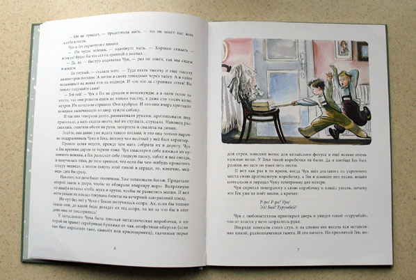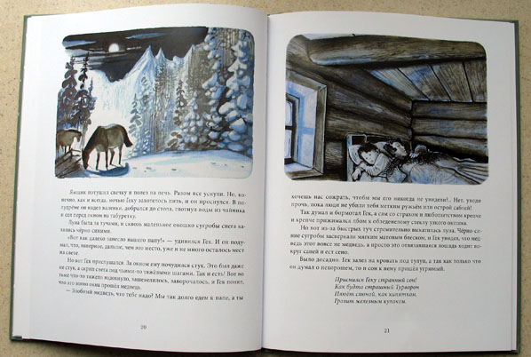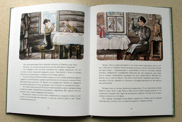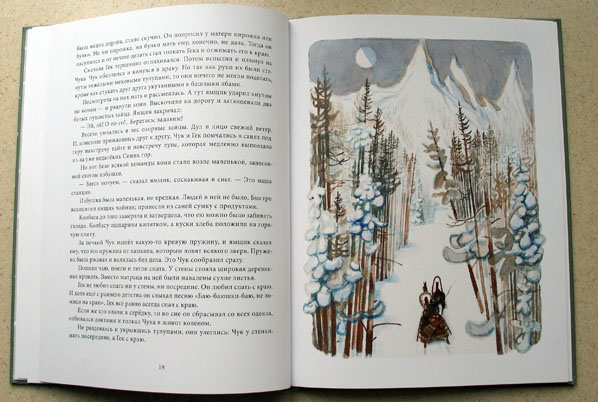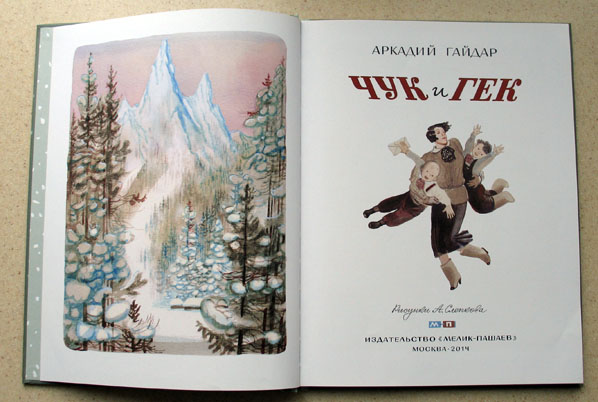 В этот раз всё прошло удачно. Мы расположились уютно на диване и под завывания ветра за окном отправились в далёкое путешествие к папе Чука и Гека. И такое приятное это было путешествие, что захотелось и самим собрать вещи и рвануть куда-нибудь из Москвы. Туда, где чистейший воздух и белоснежный снег, в уединенный домик недалеко от Синих гор.