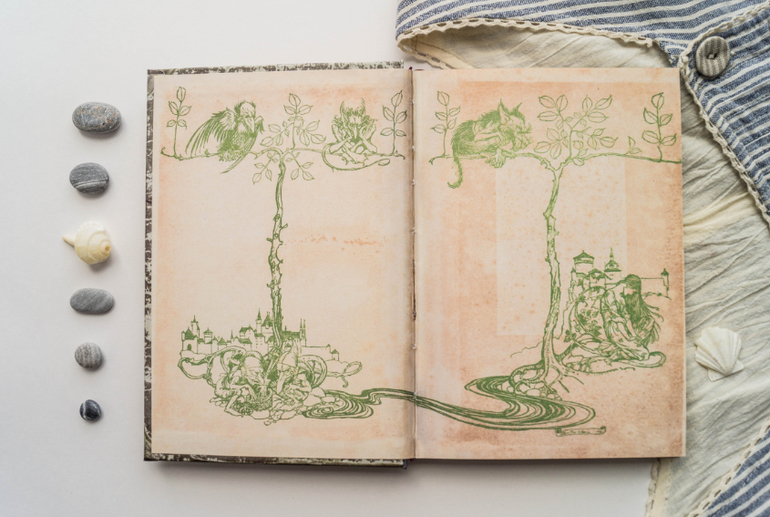 Прекрасное сочетание чёрно-белой графики и цветных картин. На мой взгляд, по части иллюстраций эта книга гораздо более органична и целостна, нежели, к примеру, последний двухтомник Гримм с Рэкхемом.