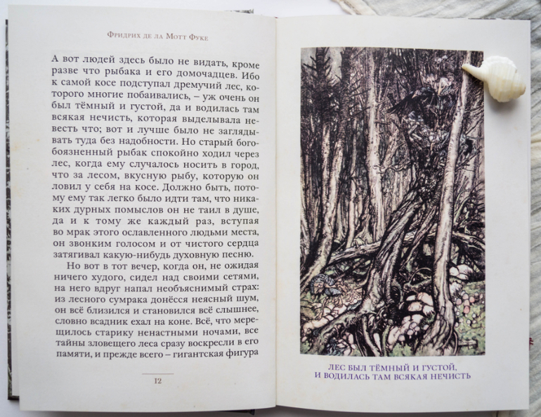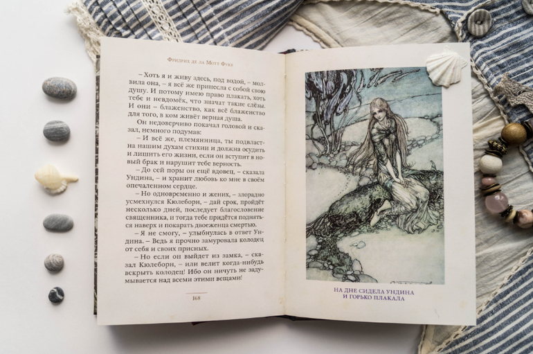 По мне, Ундина - одна из лучших книг серии. Удивительная гармония иллюстраций, оформления и текста. И не последнюю роль играет здесь выбор издательством истории, две сотни лет тому назад вышедшей из под пера барона де ла Мотт Фуке. Барона! Одно это уже подбавляет налётцу старины :) Не говоря уж о том, что Ундина его насквозь пронизана духом Средневековья. И как явственно звучат в ней мифологические мотивы! Столь бережно сохранённые писателем, не смотря на уже утвердившееся господство христианской традиции.