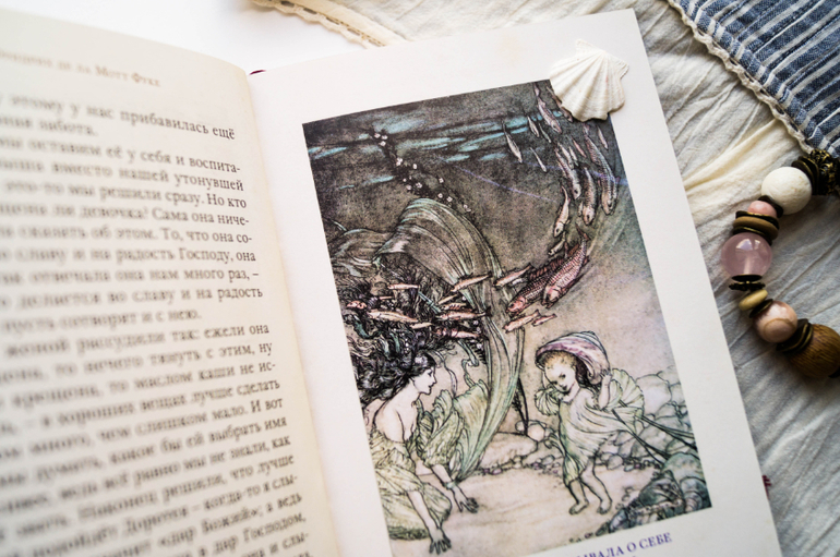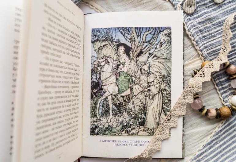 В лёгкости этой есть немалая заслуга переводчиков. Поскольку мне непременно всегда требуется позанудствовать, я не могла не найти классический перевод "Ундины" - перевод В.А. Жуковского. Отдельное спасибо издательству за уважительное отношение к труду этого блестящего поэта и переводчика и упоминание его в аннотации к книге.