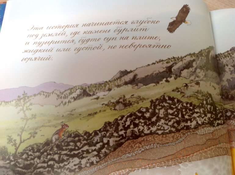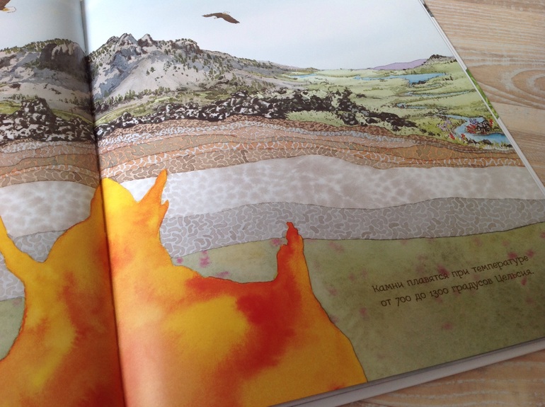 Здесь подразумевается, что дети уже знают о строении коры земли, потому как ни слова об остальных слоях, лишь о жидком ядре: