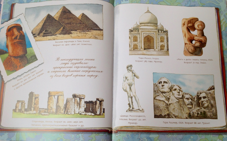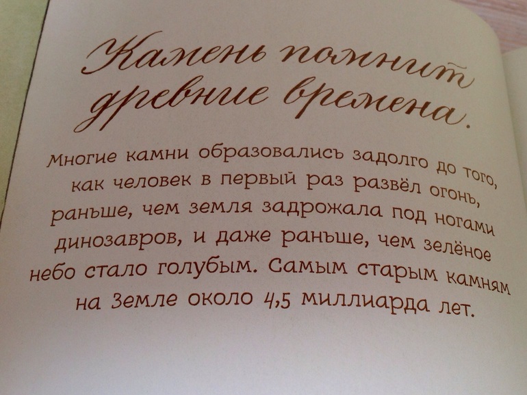Не один обзор уже сделан про эту серию, поэтому я сделаю упор на текст. На фотографиях он целиком. Учитывая , что с камнями возятся и малыши, но про историю, происхождение , разновидности , интересно будет больше мальчикам и ближе к 3 годам. Сыну почти 4, исторические данные его мало увлекают. Так что можно смело и в 5 лет подарить такую книжку, а может и позже, потому как присутствуют и сложные данные.