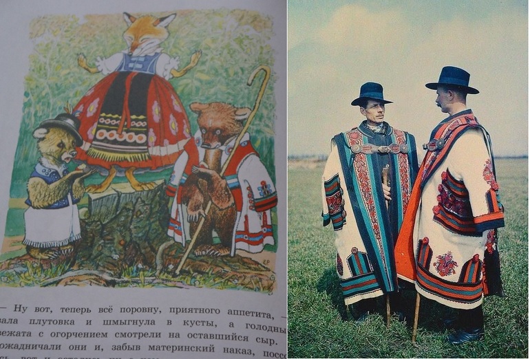 Звери одеты в красивейшие национальные наряды, на которых даже детально прорисованы узоры: сюр, национальная шляпа с перьями, и популярные безрукавки.