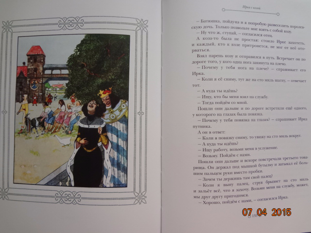 Книга очень ценна тем, что в ней представлены сказки не литературные, а народные. И собрал их чешский писатель, поэт, переводчик и историк Карел Яромир Эрбен. В издание вошло 12 сказок. Сказки безусловно интересные, самобытные. Кто не знает девушку с Золотыми волосами (сказка "Златовласка) или чудесный горшочек, который варит кашу (сказка "Горшочек, вари!")? Но есть сказки, сюжеты которых мало знакомы. Например, в сказке "Чурбачок" повествуется о бездетной бедной семье, в которой не было детей. Муж с женой страстно хотели их иметь. И вот муж нашел в лесу пенёк очень похожий на ребенка. Жена восприняла его как живого и он ожил. Но он не отплатил добром, а всех съел: и родителей, и девочку с тележкой, и крестьянина с повозкой, и стадо овец. Впрочем, закончилось все хорошо: чурбачок захотел съесть старуху, но та распорола ему брюхо мотыгой и все вышли живыми и невредимыми. На первый взгляд странная сказка, но это только на первый. Я ее поняла так, что не нужно идти против природы, если тебе что-то не дано, то оставь так или будет хуже.