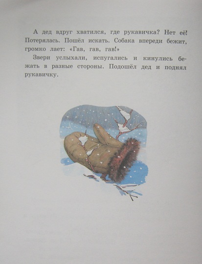 Книга прекрасная во всех отношениях, единственное, что нас огорчило, так это отсутствие деда, который собственно варежку-то и потерял)
