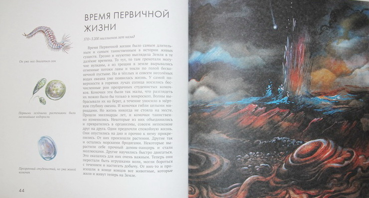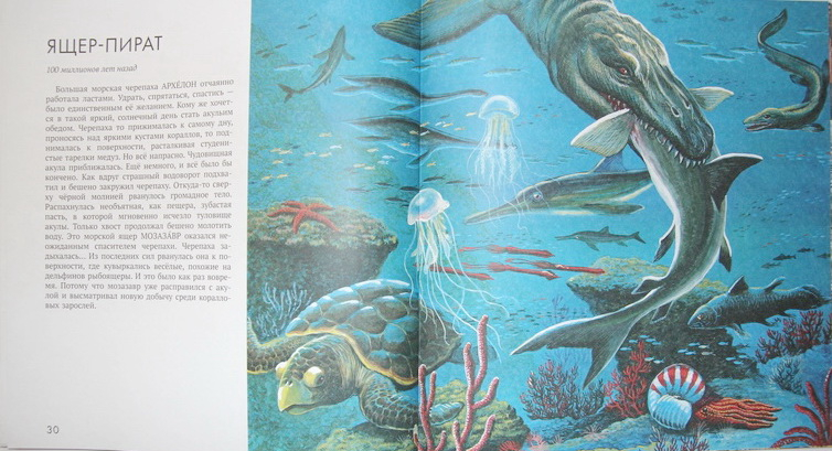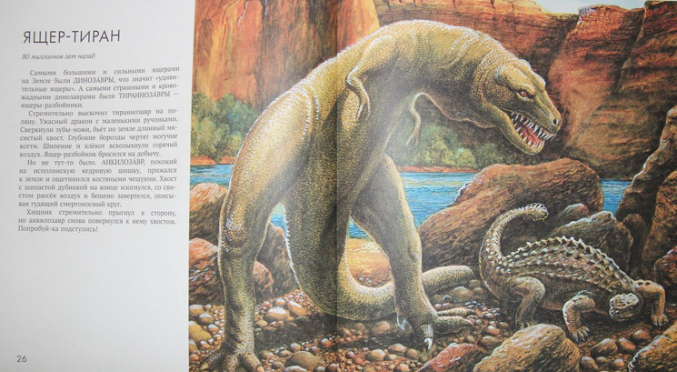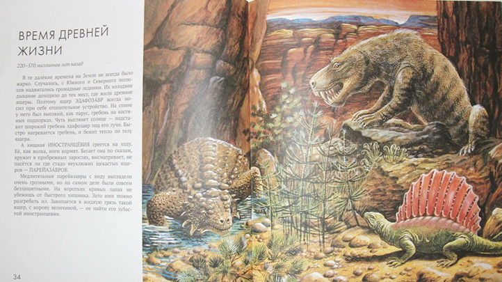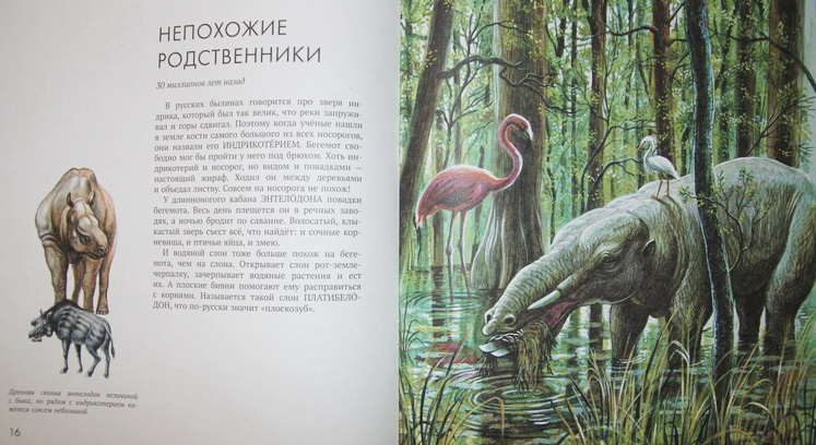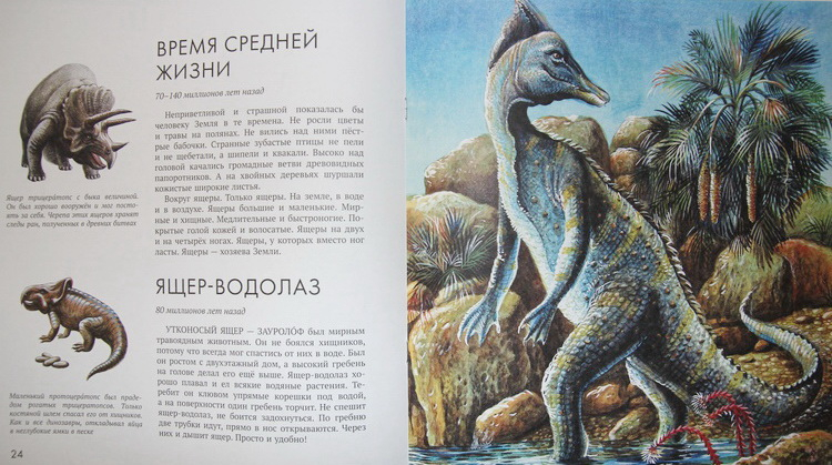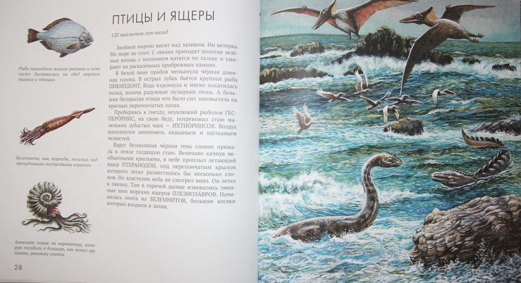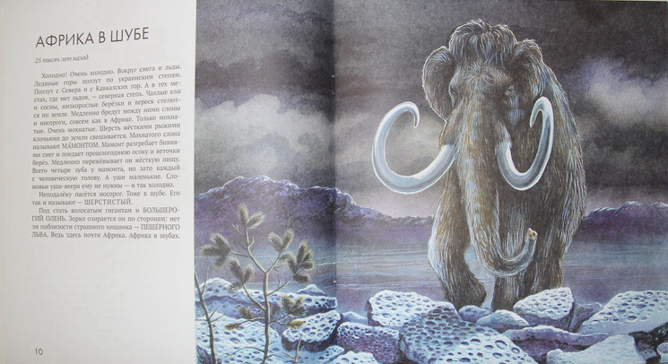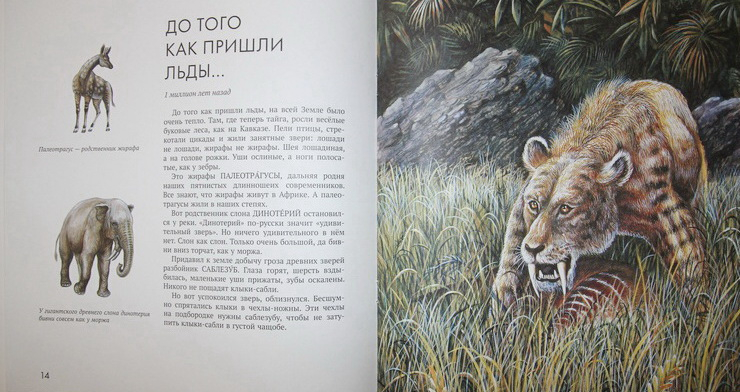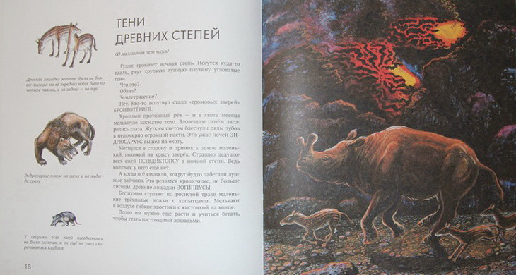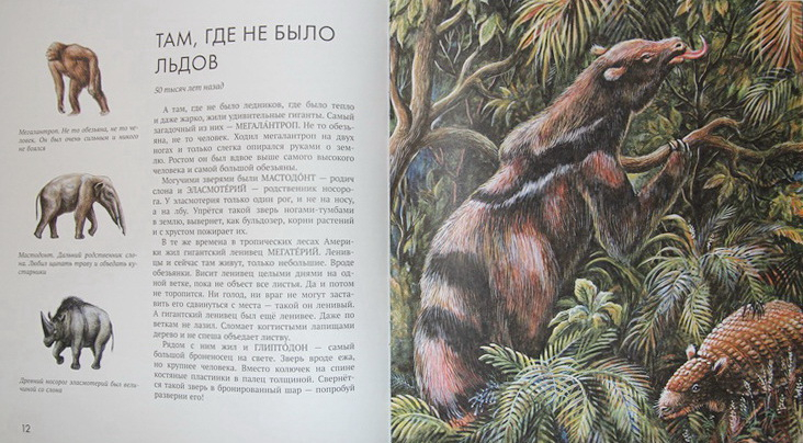 Одни иллюстрации чего стоят! Занимательные, завораживающие, погружающие в эпоху, подробные, от которых трудно оторвать взгляд. А как подумаешь, что раньше (хоть и давным-давнооо) вот тут за окном бегали такие странные существа... брр, мурашки по коже, и снова взгляд на картинку и мысли о тех временах, когда такие животные были одни на Земле, без нас, людей, таких, вроде и мелких (а может уже и с нами), но таких, угрожающих всему живому на планете, как сейчас...![]()