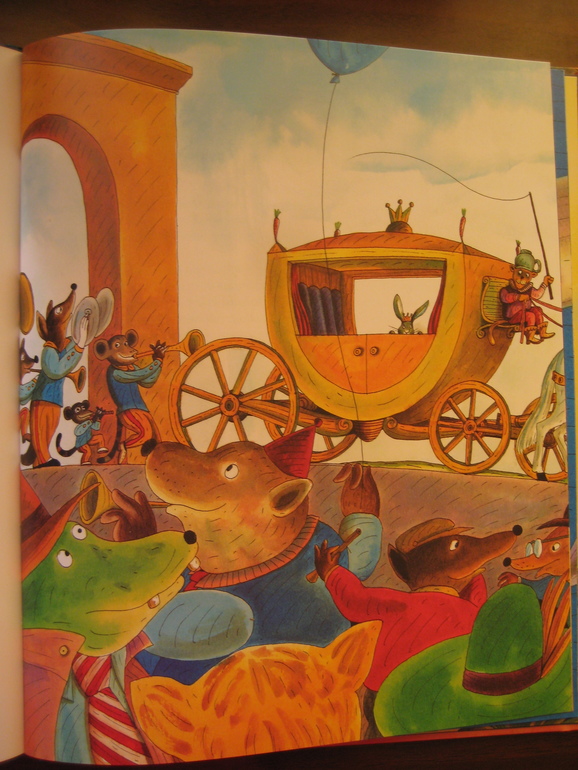 На следующий день Его Величество Кролик Первый был коронован. Церемониал ничем не отличался от любой другой коронации: золотая карета, запряжённая четвёркой белых лошадей, оркестр, фейерверк. Лесные жители, однако веселились так, будто это был какой-то карнавал, а не коронация. Единственным, кто ничего не заметил, был новый король, который сжимал лапками уши, чтобы никто не видел, как они дрожат, и без конца повторял: "Какая честь! Какая честь!"