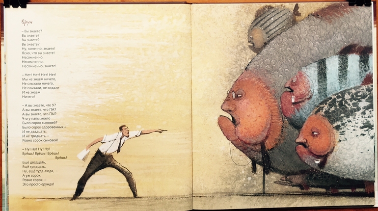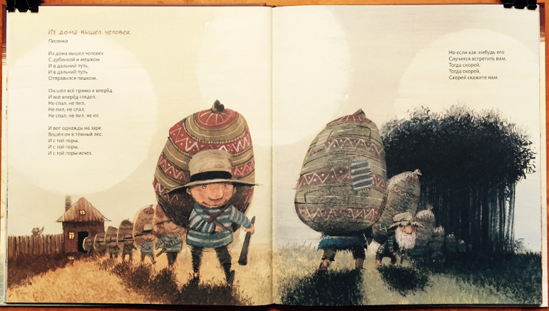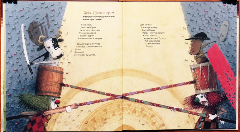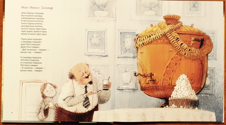 Надо сказать, дочка моя (3 г. 10 мес.) пока что книгой не прониклась. Я это предполагала, только получив книгу и рассматривая иллюстрации. Все же, они очень необычны, и цветовая гамма, и непростые композиции, и не всегда понятные изображения. Хотя и, безусловно талантливы. Впрочем, для дочки у нас есть другое издание, с детскими рисунками, Хармса много не бывает. Подождем, пока дорастет и до этого.