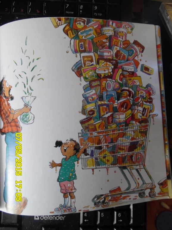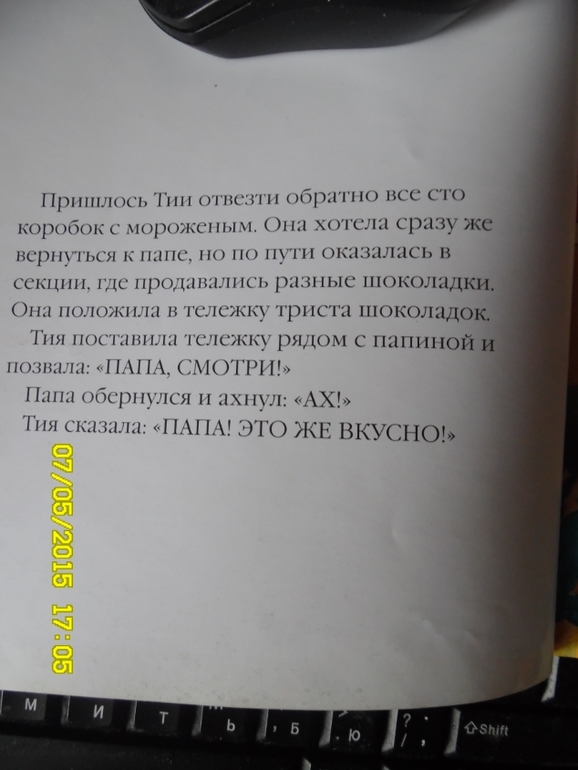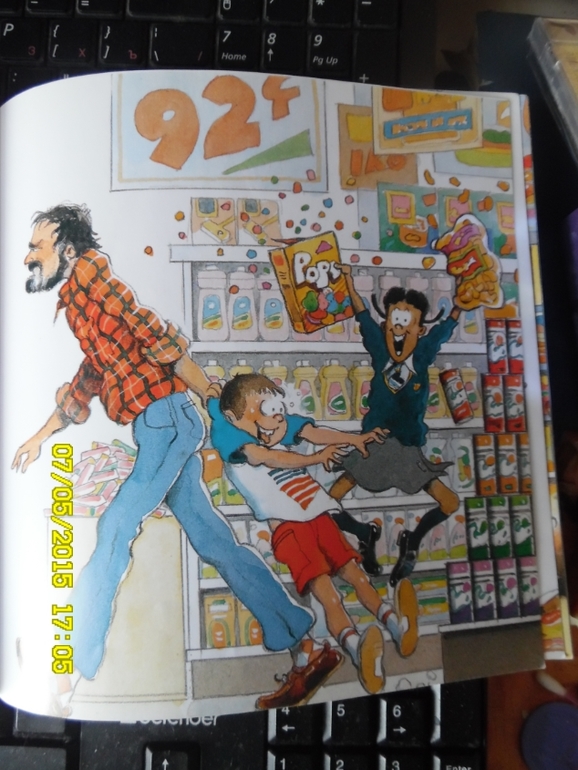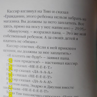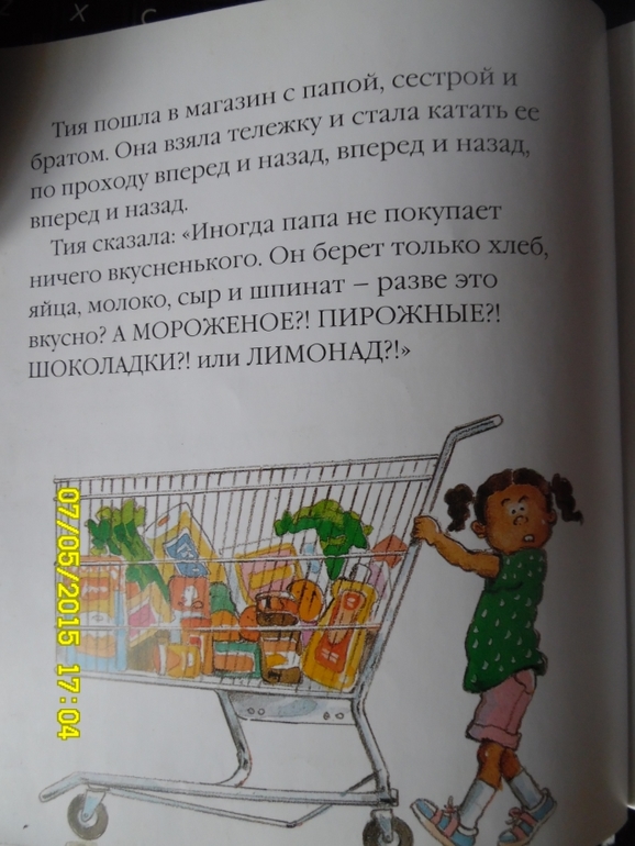 Обожаю книги с юмором. Случайно взяла ее в библиотеке. Теперь хочу что бы она была у нас дома постоянно. Обожаю книги с юмором. А эта книга просто искрится юмором. В ней рассказывается как папа с детьми ходил в магазин, а точнее с дочкой Тией. Рисунки тоже потрясающе смешные. После прочтения этой книги мне захотелось прочитать и остальные книги этого автора. Поверьте они тоже замечательные. Ну ладно об этом потом, а сейчас выкладываю все страницы этой книги по порядку. Потому что ее обязательно надо прочитать. И настроение будет супер!!!