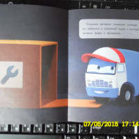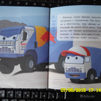 Как мы могли пройти мимо книги с машинками, конечно мы ее взяли. Иллюстрации нам понравились. Текста на странице мало. Произведение про то как маленький грузовичок захотел отправиться со своими братьями российскими грузовиками на всемирноизвестные гонки Дакар, но братья не разрешили ему. Грузовичка это не остановило и он тайком ночью пробрался в ящик с инструментами. (По моему не очень педагогично о таком варианте рассказывать детям, так сказать настоять на своем.)