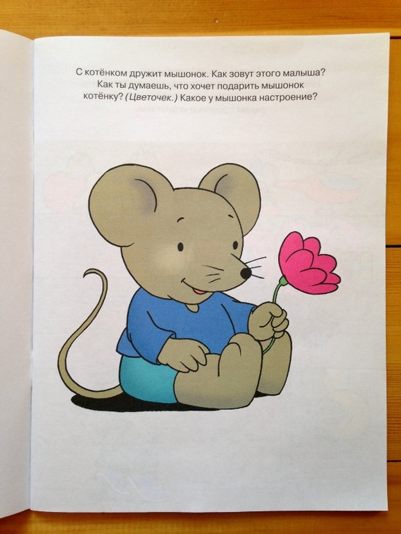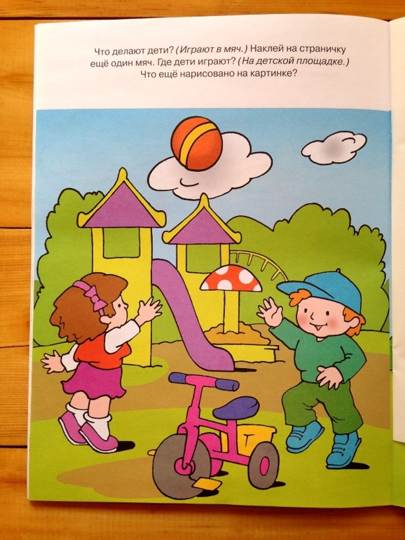 На мой взгляд, очень важно уделять усиленное внимание именно развитию речи. Скудность языка современных подростков, да и более взрослых людей, очень огорчает. Да и чего лукавить, иногда не хватает навыков, чтобы изложить мысль именно так, как хотелось, чтобы донести ее, как задумано, чтобы она была понята правильно и тебя приятно было слушать или читать. Свою дочь всегда слушаю внимательно, даже если я занята, отвлекаюсь и слушаю, даю возможность выговориться и жду, пока она подберет нужные слова, задаю вопросы))) Для этих целей, конечно, вовсе необязательно покупать подобную этой книжку, диалог с ребенком можно завязать по совершенно любой картинке, книге, игрушке, предмету обихода, да совершенно неважно даже что именно станет предметом разговора, главное - диалог этот поддержать. Но это пособие может стать помощником или указателем для тех, кто начинает свои занятия с ребенком по развитию речи, и здесь же есть наклейки, что несомненно привлечет внимание. Задания строятся именно на диалоге, то есть дана картинка и вопросы, которые озвучит родитель, ребенку нужно ответить на них, либо описать происходящее на картинке. Что касается наклеек, то здесь они никакой обучающей функции не несут, наклей карандашик рядом с альбомом, окно домику и подобное.