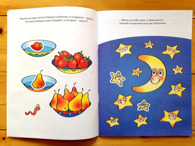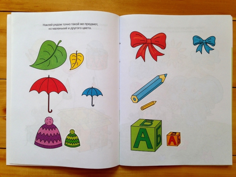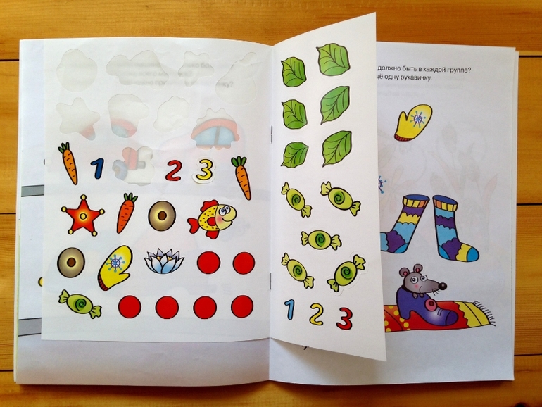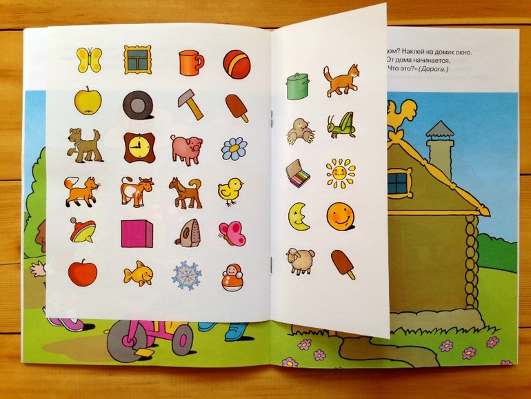 Чем хорошо наличие наклеек, что помимо главной задачи, выполняя задания ребенок развивает координацию руки и всеми любимую мелкую моторику))) И, мне кажется, что наклейки привлекут внимание любого ребенка, я лично еще не видела ни одного ребенка, не любящего повозиться с этими клейкими листочками, у нас так уже даже все стикеры мамины и папины в ход пошли на всяческие самопридуманные дочины игры.