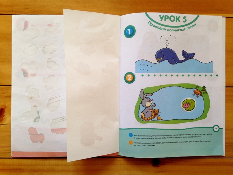 Каждая книга дает задание на развитие определенного навыка, в каждой есть вкладыш с наклейками.