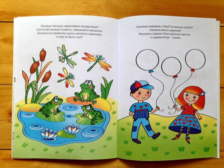 Мне понравились задания, в которых нужно соотнести количество и цифру, то есть наклеить рядом с предметами цифру, соответствующую их количеству. Я, честно говоря, думала, что такие задания еще нам рано выполнять, но дочь справилась, притом быстро и легко. Правильно психологи все-таки говорят: никогда ни за кого не решайте, тем более думая о способностях человека. А способности своего ребенка, кажется так легко оценить матери, ан нет, здесь можно очень легко ошибиться, даже проще, чем с чужими))) То есть дочь быстро справилась с заданиями на сет до трех, поэтому заказала следующую возрастную категорию. В этой книжке тоже 32 страницы и вкладыш с наклейками.