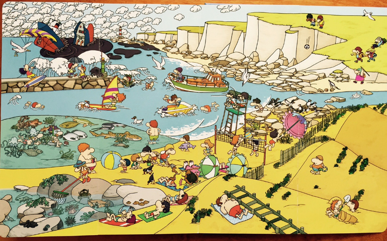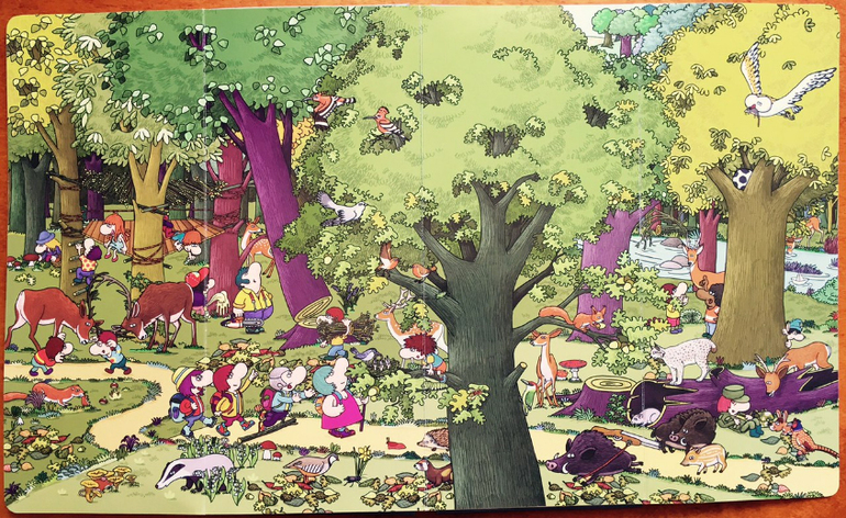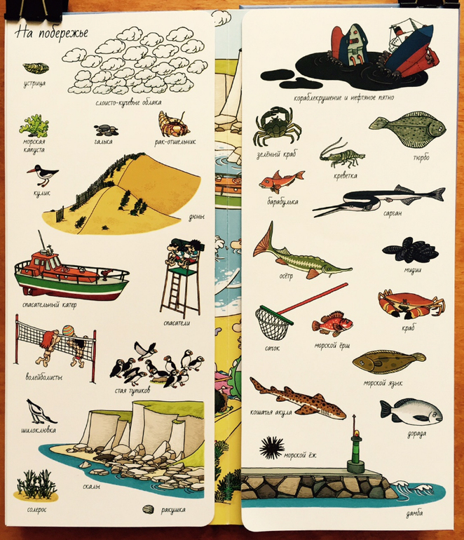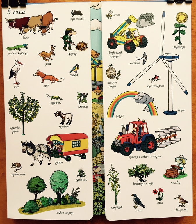 Мне понравилось, что есть и картинки, которые достаточно крупные и их довольно легко найти, а есть те, для поиска которых надо постараться. Кроме того, большие картины не перенасыщены деталями, в самый раз, чтобы и не перенапрягать зрение (есть книги, в которых, на мой взгляд, все настолько пестрит, что утомит даже взрослого), и играть-искать интересно.