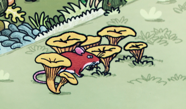 А вот, за лисичками, прячется мышь: