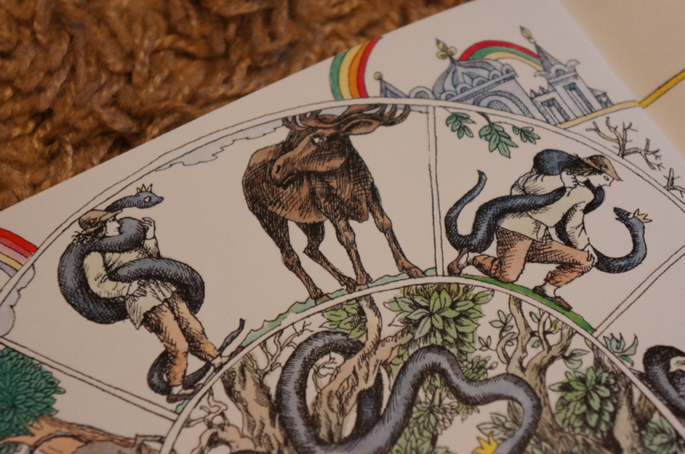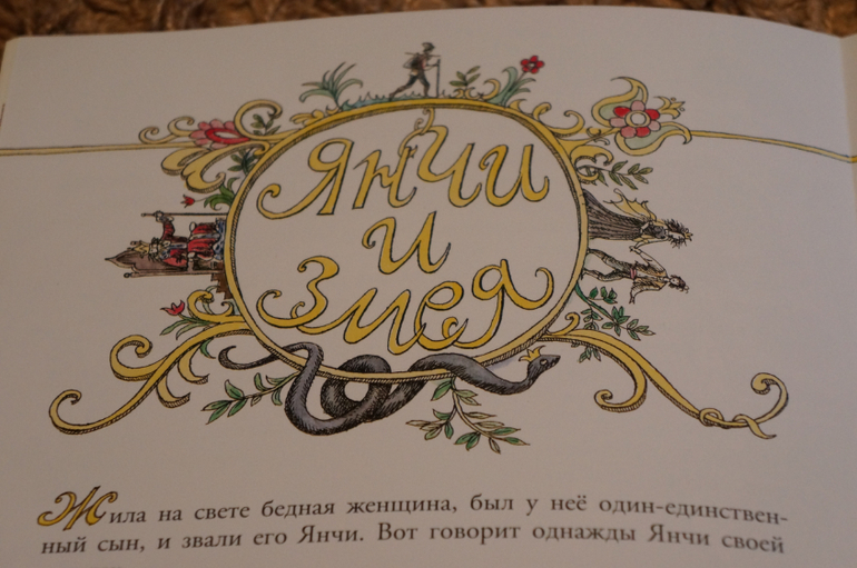 Обратите внимание на каждое название сказки Очень интересно разглядывать каждую детальку и растягивать удовольствие от прочтения. Даже название проиллюстрировано и отражает содержание сказки.