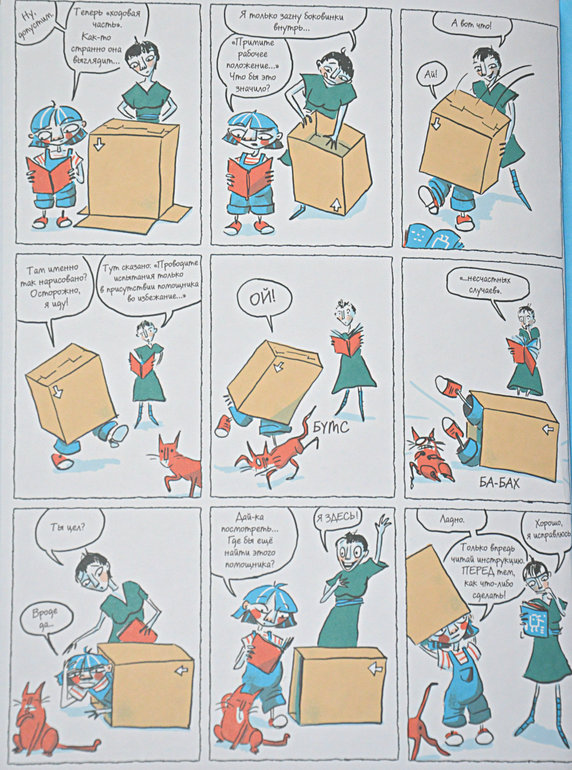На мой взгляд у книги два существенных плюса - комикс на протяжении всей книги, который будет интересен малышу и натолкнет маму (папу) на мысль о том, что играть с малышом очень интересно, главное отпустить свои "взрослые" предрассудки! В книге множество идей для воплощения различных видом роботов!
