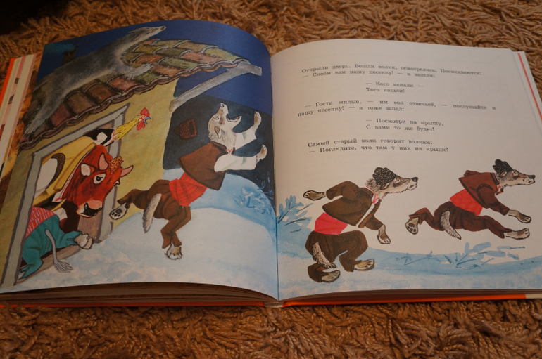 Книга необычного квадратного размера, крупный шрифт (глаза отдыхают и наслаждаются), плотные белый страницы.